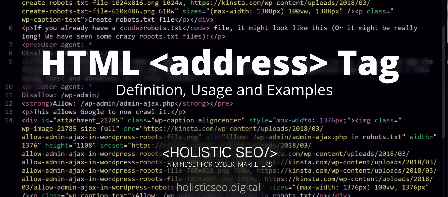 تگ <address> برای نمایش اطلاعات تماس نویسنده یا مالک یک سند یا مقاله استفاده می‌شود. معمولاً در پایین صفحه یا داخل تگ <article> قرار می‌گیرد.